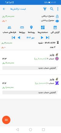 ارتباط بین تراکنشها: به صورت یک آیکن زنجیر در کنار آیکن نوع تراکنش نمایش داده شده است. در صورتی که یک تراکنش به تراکنش دیگر که قبلاً ثبت شده ارتباط داشته باشد میتوانید از این امکان استفاده کنید. پس از ثبت یک آیکن ماشبه در کنار تراکنشهای دارای ارتباط نمایش داده میشود که با لمس هر یک از تراکنشها میتوانید تراکنشهای دیگری که مربوط به آنها است را مشاهده کنید.